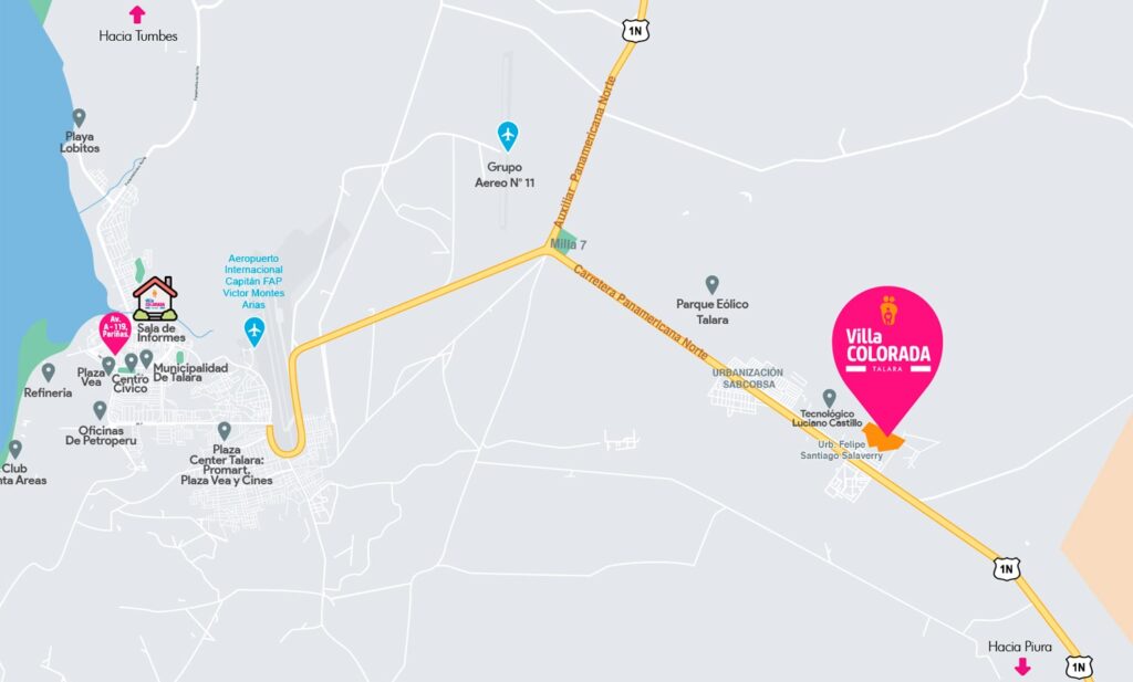 Ingreso Km 70 Carretera Talara – Piura (a espaldas de Urb. Felipe S. Salaverry II etapa – ENACE)